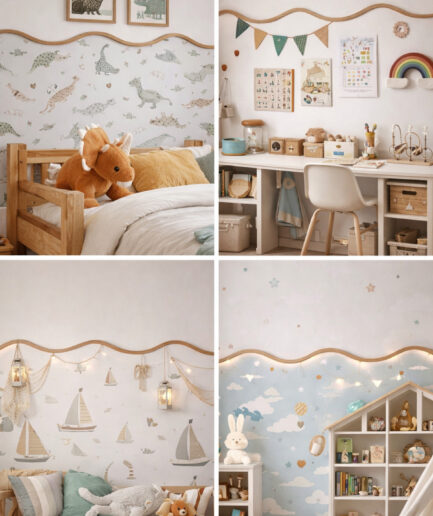 Dalga Dekoratif Boyanabilir Duvar Bordürü – Çocuk Yatak Odası Dekorasyon Çıta Bordür Ham Ahşap MDF