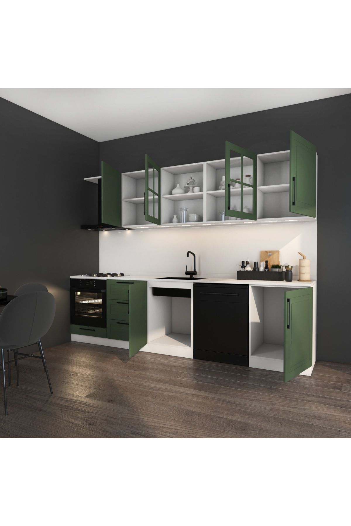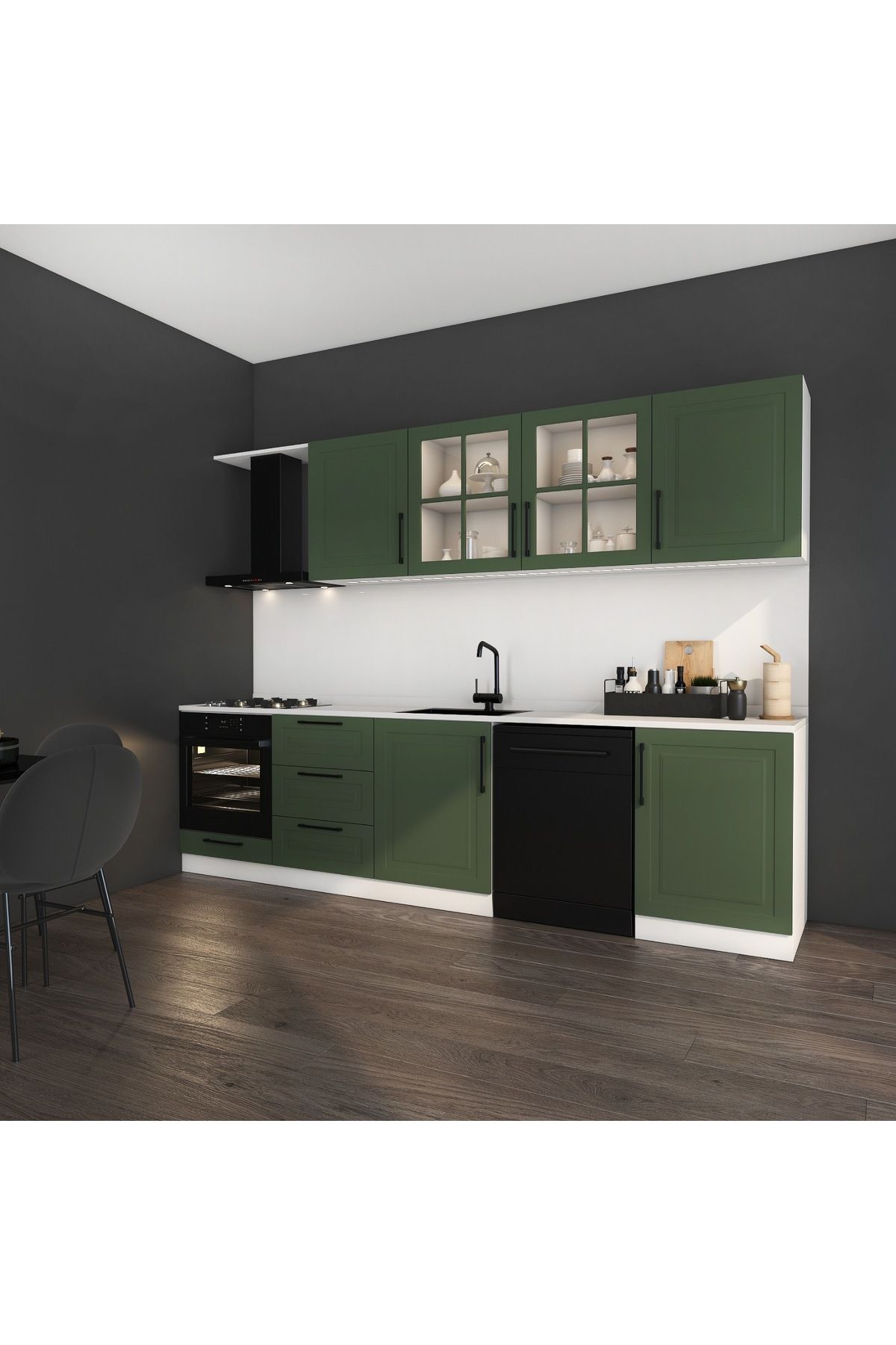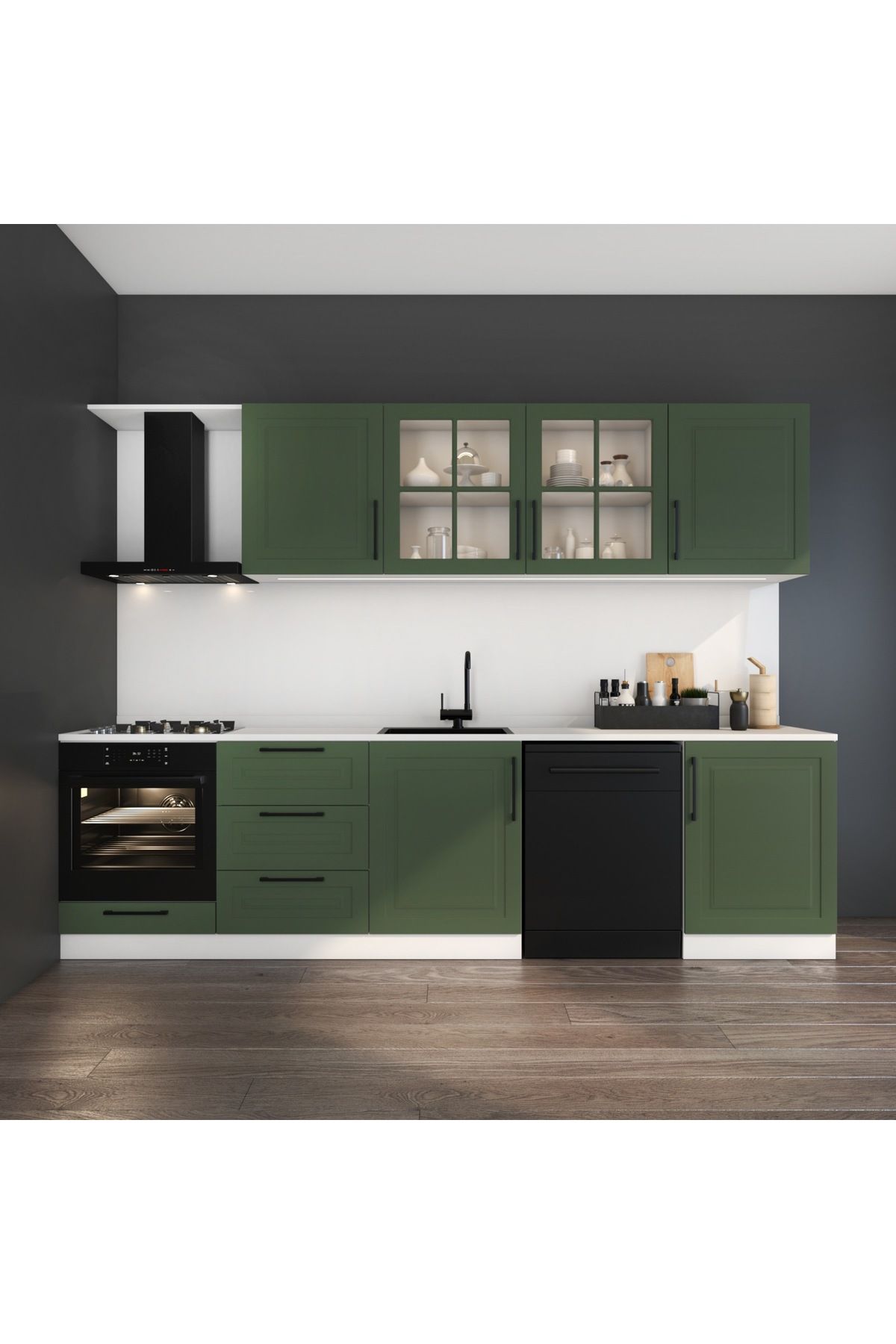 Üst dolaplarda Yükseklik: 70 cm Derinlik: 34cm Modül Sayısı: 4 Alt dolaplarda Yükseklik: 85.8cm Derinlik: 59 cm Modül Sayısı: 4 300 cm olan bu mutfağımız toplam 8 modülden oluşmakta ve modülleri ayrı ayrı olduğu için her biri yer değişimine uygundur, dilediğiniz gibi modüllerin yer değişimini yapabilirsiniz.; Açılır kapaklarda kapak yavaşlatma sistemi bulunur, kapağı kapatırken çarpma yapmaz.; Kapaklarda kullanılan menteşelerde bir Türk firması olan Samet markanın menteşelerini kullanmayı tercih ettik.; Kapaklar da kullanılan menteşelerin birer tanesinde frenli menteşe kullanılmıştır.; Çekmecelerde size kullanım kolaylığı sağlayacak olan tam açılır teleskopik ray sistemi kullanılmıştır.; Baza ve Ayak yükseklikleri 12cm dir.; Dolap parçalarının görünen yüzeylerinde piyasanın aksine 0,80mm kalınlığında ve yüksek kalitede yapıştırma özelliğine sahip Kenar Bandı kullanılmıştır.; Ürünlerimiz, tarafınıza demonte bir şekilde ulaştırılır.; Kurulumunu basit el aletleri yardımıyla kolayca yapabilirsiniz.; Koli içerisinde, montaj için gerekli el aletleri haricinde tüm malzemeleri ve ayrıntılı kurulum şemasını bulabilirsiniz.; Ürünü nemli bir bezle silerek temizleyebilirsiniz.; Çizilmelere ve yıpranmalara karşı dayanıklıdır.; Her Dekorasyona Uyum Sağlayan, Fonksiyonel Tasarımı ile dikkat çeken bu ürün de kullanılan ham maddelerin tümü %100 yerli üretimdir.; 18 mm kalınlığında ve 1. sınıf kalitede MDF Lam dan üretilmiştir.; Üründe kullanılan maddeler çevre ve insan sağlığı gözetilerek hazırlanmıştır.; Kanserojen ve benzeri zararlı maddeler içermez.;